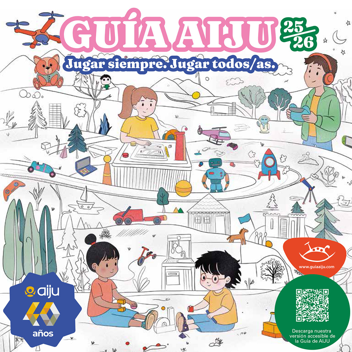 Guía AIJUÚnica guía basada en estudios con niños/as y familias 2023/2024 | Juego y juguete Desde AIJU, un año más, tenemos el placer de presentaros la 34ª edición de la Guía. Descargar Guía AIJU 2024-2025 en PDF (versión accesible) Descargar Guía AIJU 2024-2025 en PDF (versión accesible)