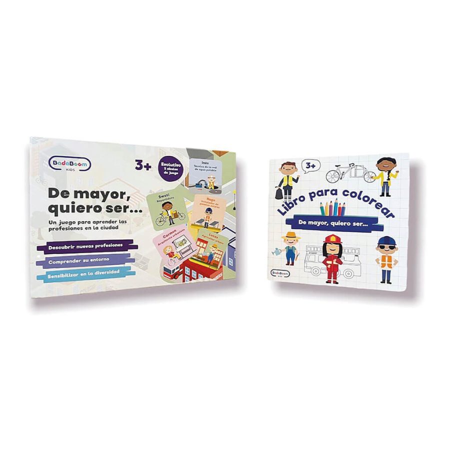 Es muy guay aprender las profesiones a través de personajes y juegos. Además, podemos colorear las ilustraciones.
