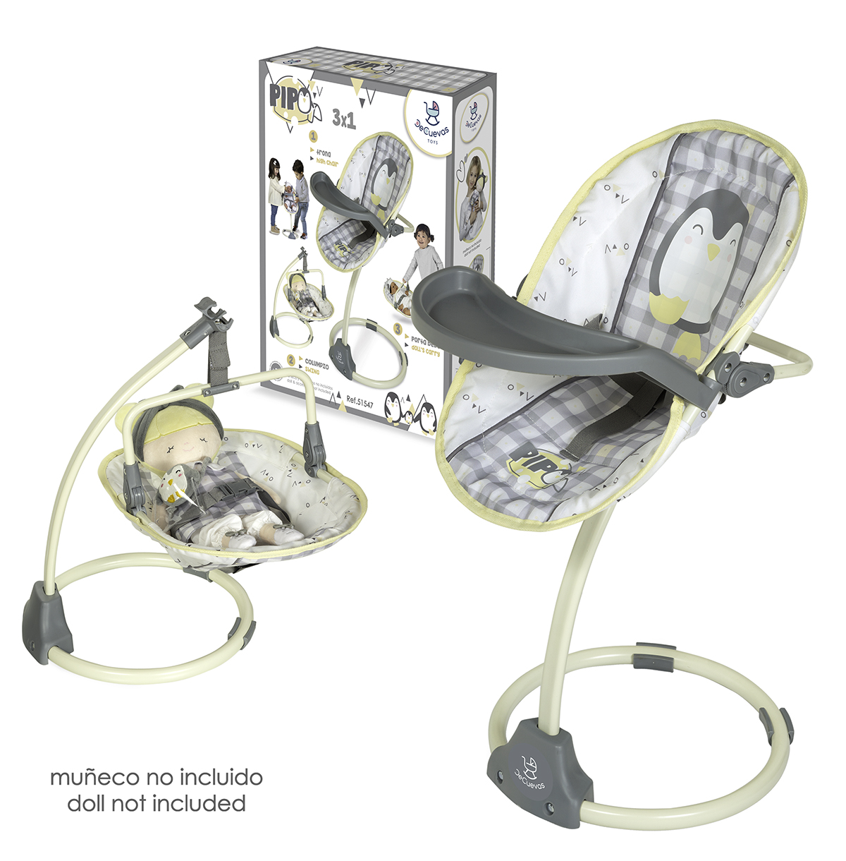 Fácil montaje. Estructura estable. Para muñecos de máximo 50 cm, muñeco no incluido.